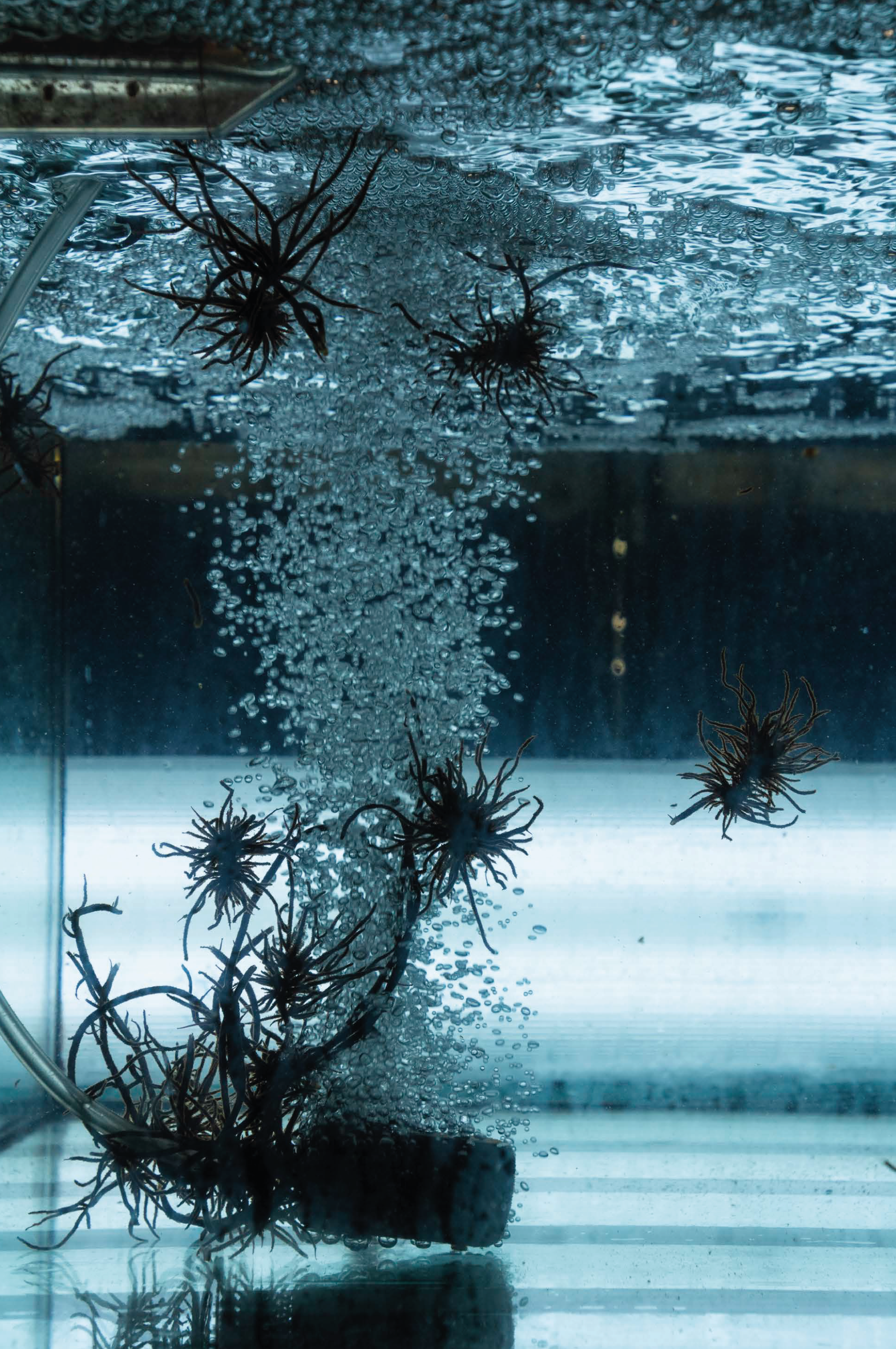A exposição é constituída por fotografias de Emanuel Brás realizadas nas instalações do MareIPleiria [6], textos de Teresa Mouga e um herbário de algas realizado em cianotipia a partir de algas recolhidas ou reunidas no herbário do nosso professor e investigador Marco Lemos. Quisemos glosar o herbário de Anna Atkins, porque foi no contexto das artes, um dos raros momentos de atenção e curiosidade para com as algas.
