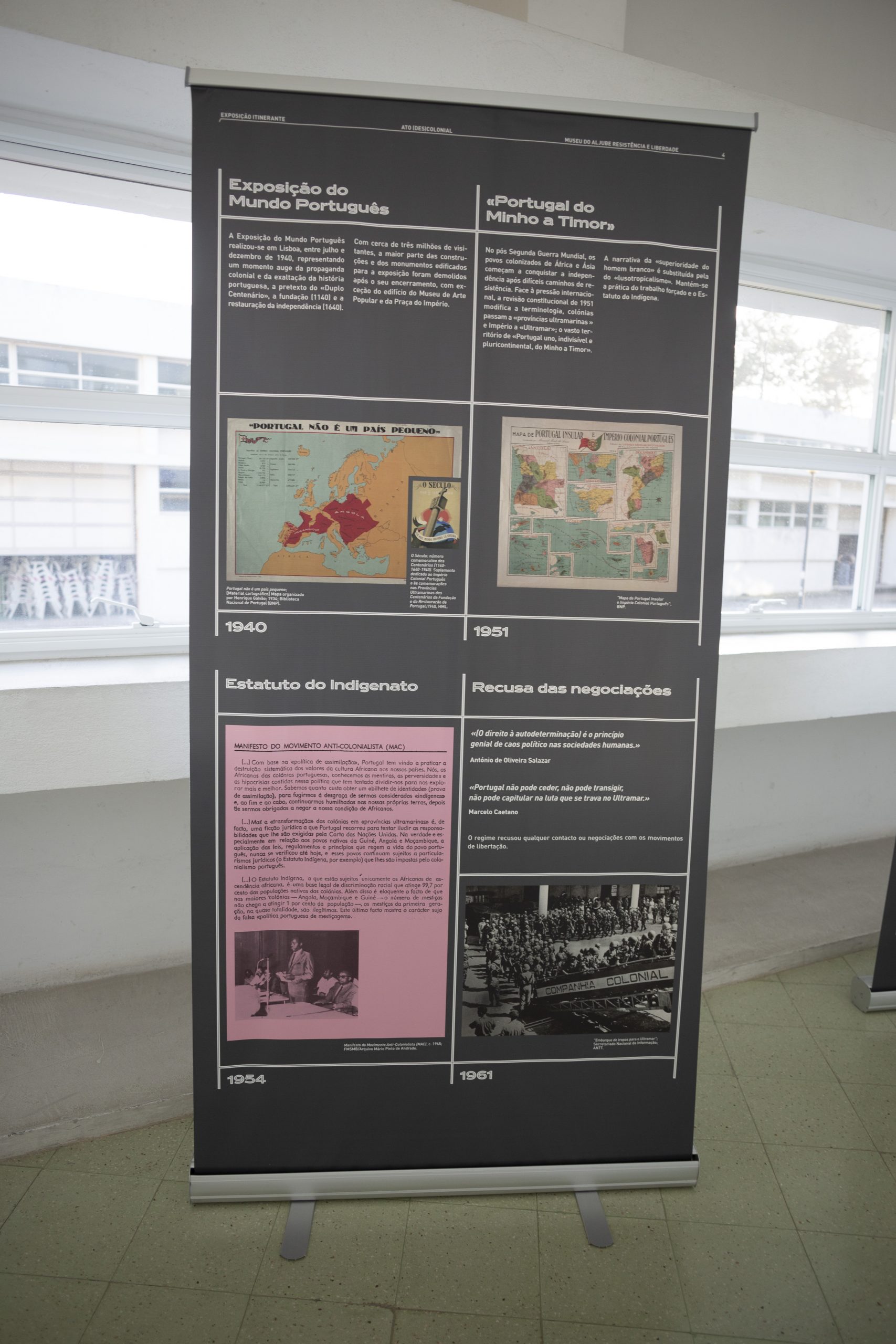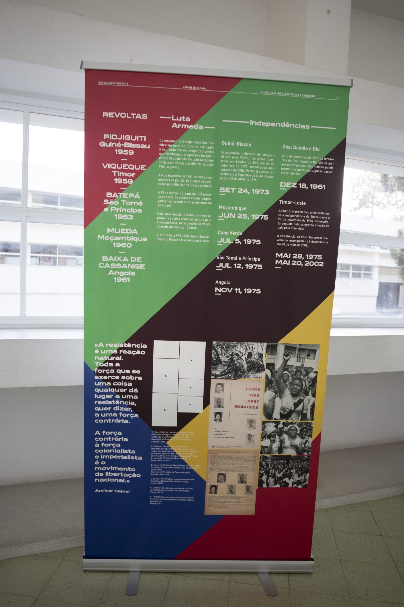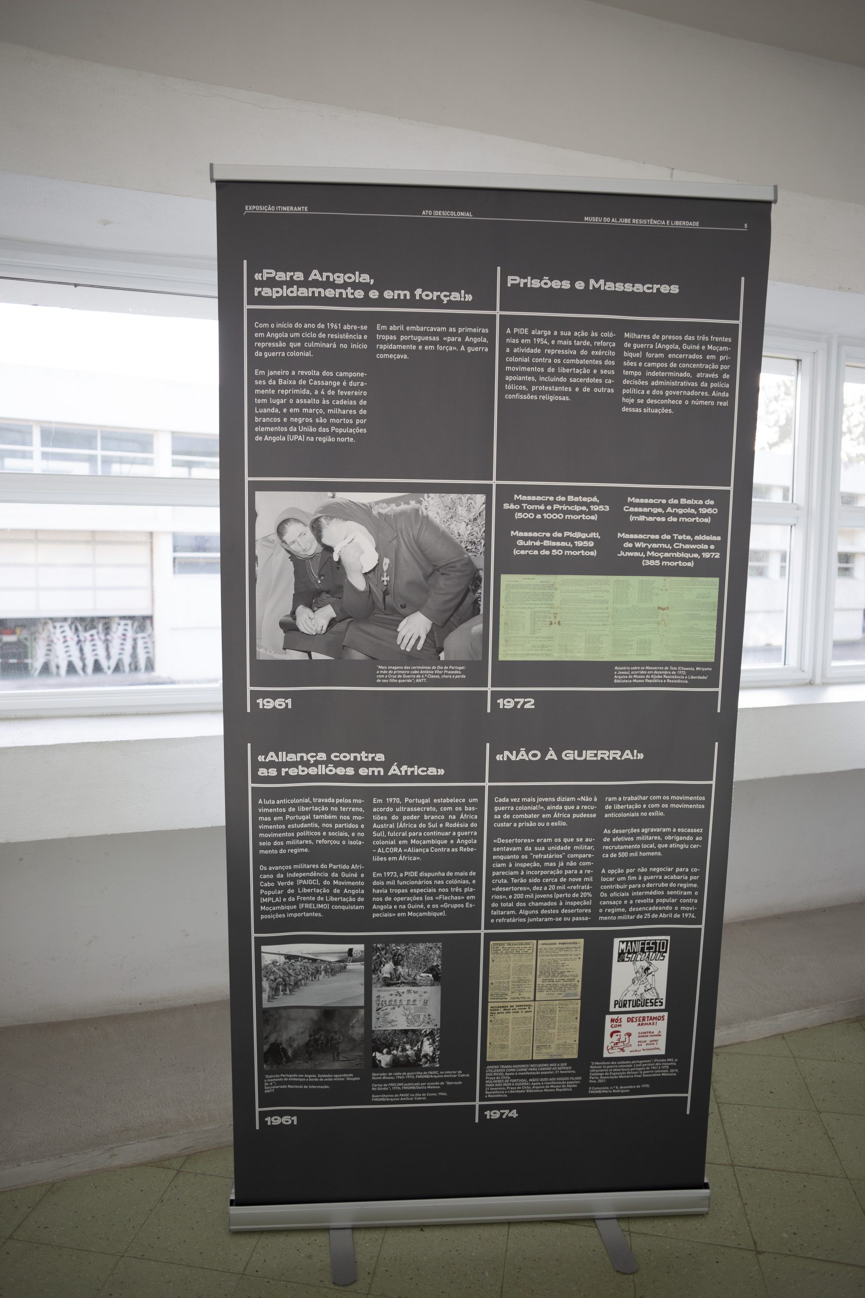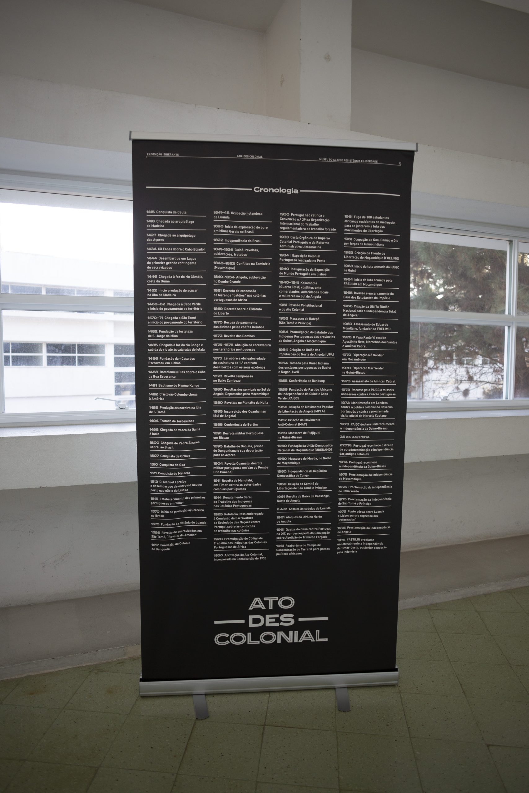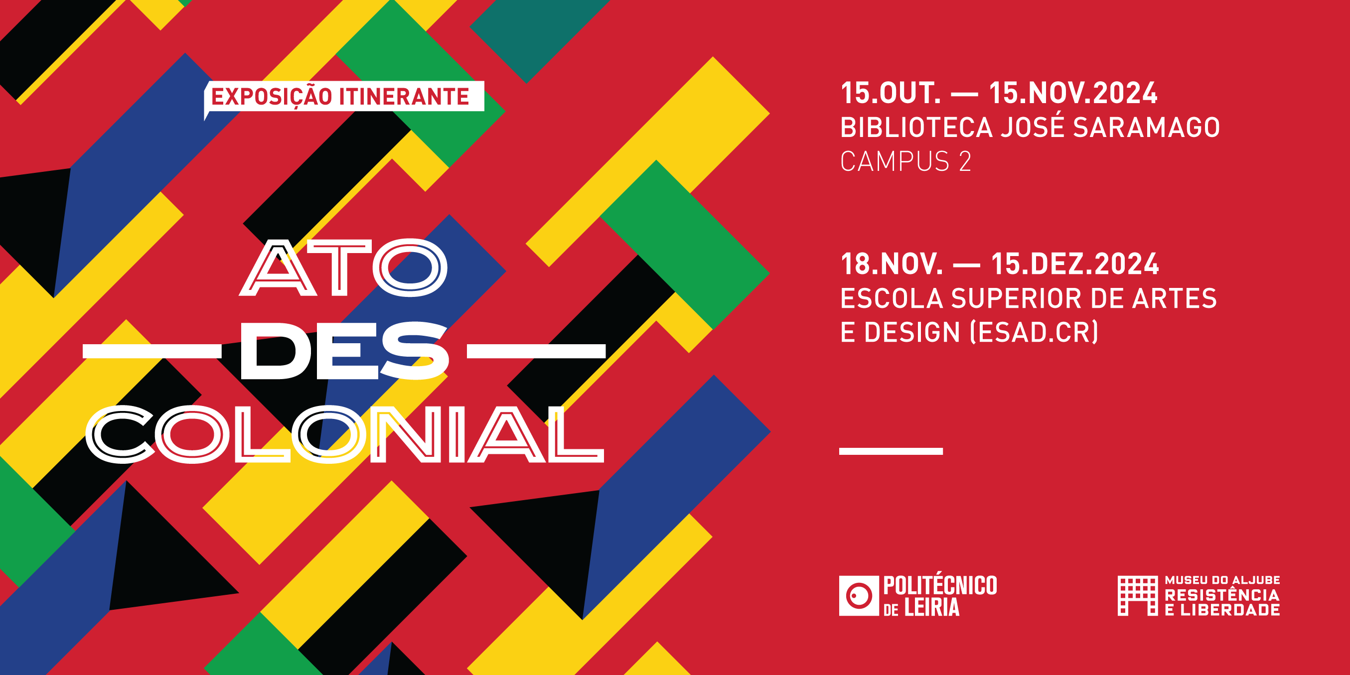 A Biblioteca José Saramago e a Escola Superior de Artes e Design do Instituto Politécnico de Leiria acolhem a exposição itinerante “ATO (DES)COLONIAL” do Museu do Aljube – Resistência e Liberdade, de 15 de outubro a 15 de novembro e de 18 de novembro a 15 de dezembro de 2024, respetivamente.